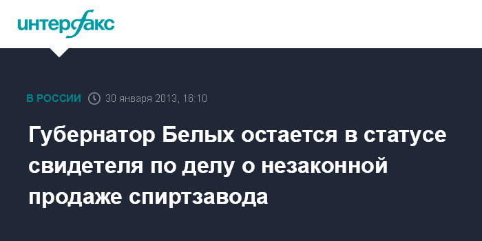 Губернатор Белых остается в статусе свидетеля по делу о незаконной продаже спиртзавода