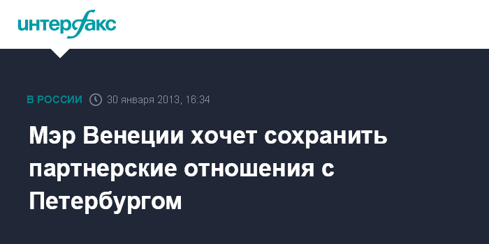 Рим. 30 января. INTERFAX.RU - Мэр Венеции Джорджо Орсони не поддержал решение горсовета приостановить действие соглашения о сотрудничестве с Санкт-Петербургом, сообщает в среду газета Corriere della Sera.