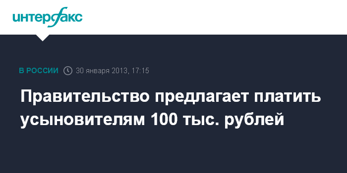 Правительство предлагает платить усыновителям 100 тыс. рублей