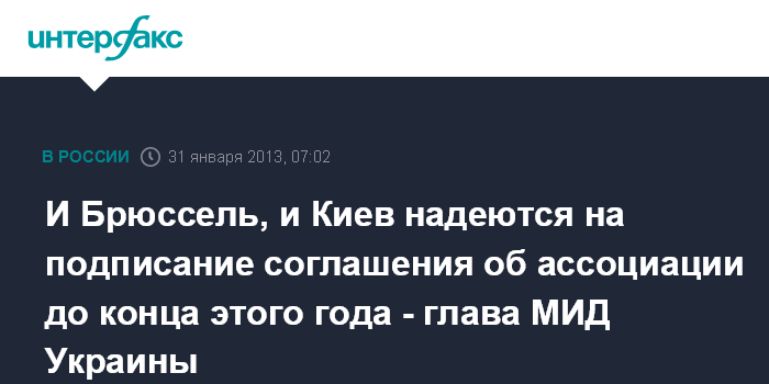 Брюссель. 31 января. ИНТЕРФАКС-УКРАИНА - Министр иностранных дел Украины Леонид Кожара утверждает, что и Киев, и Брюссель надеются подписать соглашение об ассоциации в этом году.