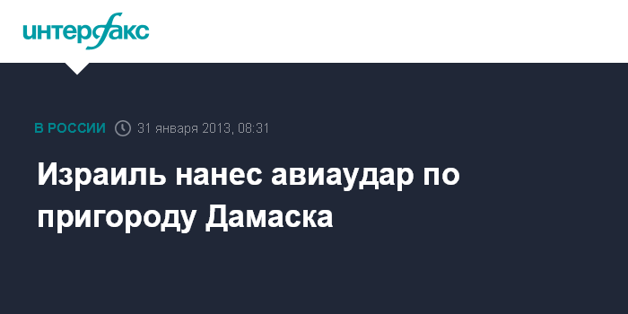 Бейрут. 31 января. INTERFAX.RU - Самолеты израильских ВВС в среду нанесли удар по расположенному в пригороде сирийской столицы Дамаске научно-исследовательскому центру, сообщило государственное телевидение Сирии.