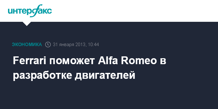 Москва. 31 января. INTERFAX.RU - Итальянский производитель спорткаров Ferrari поможет другому местному производителю автомобилей - компании Alfa Romeo - наладить выпуск двигателей. Об этом в среду рассказал журналистам управляющий автоконцерна Fiat-Chrysler Серджо Марчонне.