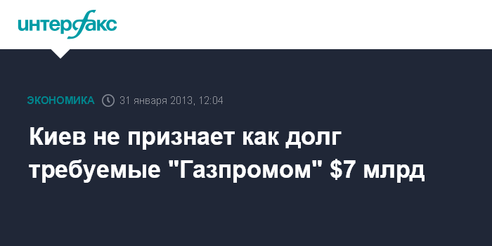 Брюссель. 31 января. ИНТЕРФАКС-УКРАИНА - Министр иностранных дел Украины Леонид Кожара заявил, что Киев не признал $7 млрд, затребованных ОАО "Газпромом" в качестве штрафа за недобор газа в 2012 году.