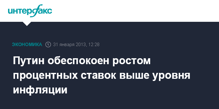 Путин обеспокоен ростом процентных ставок выше уровня инфляции
