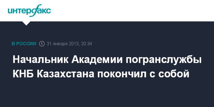 Алматы. 31 января. INTERFAX.RU - Начальник Академии пограничной службы Комитета национальной безопасности (КНБ) Казахстана генерал-майор Талгат Есетов в четверг вечером застрелился в своем рабочем кабинете, сообщил агентству "Интерфакс-Казахстан" источник в силовых ведомствах.