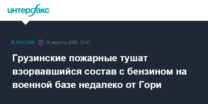 Тбилиси. 24 августа. INTERFAX.RU - Грузинским пожарным не удается погасить пожар, распространившийся на железнодорожный состав с топливом в результате мощного взрыва в воскресенье на военной базе Минобороны Грузии в селе Скра в 8 километрах от Гори.