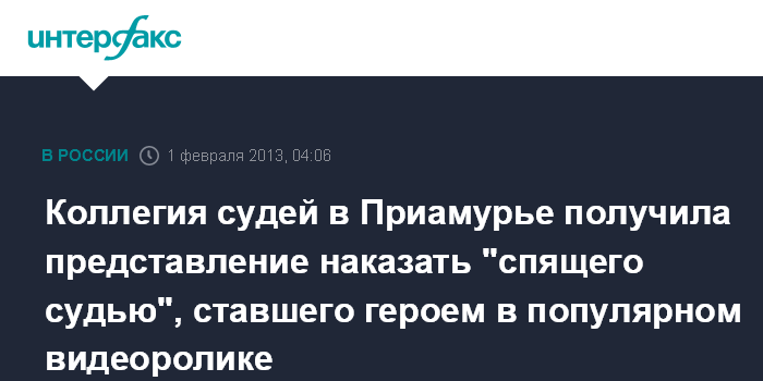 Благовещенск. 1 февраля. ИНТЕРФАКС-ДАЛЬНИЙ ВОСТОК - В Амурской области завершена проверка по факту появления на популярном видеохостинге ролика со "спящим судьей", сообщает Амурский областной суд в пятницу.