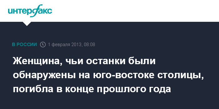 Москва. 1 февраля. INTERFAX.RU - Женщина, останки которой были обнаружены накануне на юго-востоке Москвы, была убита в конце 2012 года, сообщил "Интерфаксу" источник в правоохранительных органах.