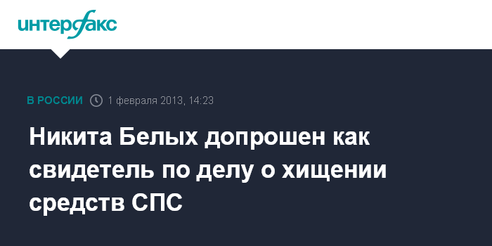 Никита Белых допрошен как свидетель по делу о хищении средств СПС