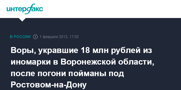 Ростов-на-Дону. 1 февраля. INTERFAX.RU - Инспекторы ДПС задержали в Ростовской области четырех подозреваемых в краже 18 млн рублей, похищенных из машины в Воронежской области, сообщили в пятницу агентству "Интерфакс-Юг" в УГИБДД по Ростовской области.