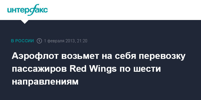 Москва. 1 февраля. INTERFAX.RU - ОАО "Аэрофлот - российские авиалинии" будет перевозить пассажиров авиакомпании Red Wings по шести направлениям в период с 3 февраля по 21 марта 2013 г., говорится в сообщении "Аэрофлота".