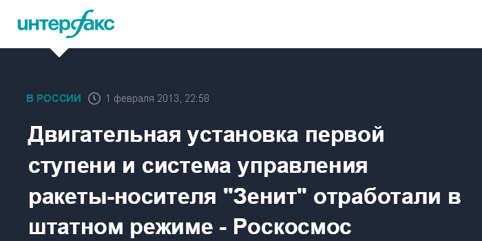 В нем напоминается, что 1 февраля 2013 года с ракетно-космического комплекса "Морской старт" был осуществлен старт ракеты-носителя (РН) "Зенит" с разгонным блоком ДМ-SL и космическим аппаратом "Интелсат-27".