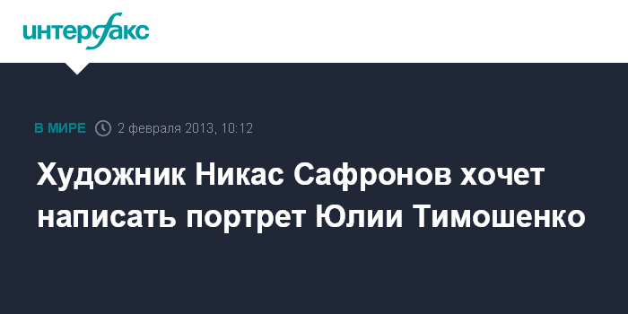 На пресс-конференции в Днепропетровске он поделился своими планами написать портреты осужденной экс-премьера Украины Юлии Тимошенко, лидера группы "ВВ" Олега Скрипки и мэра Днепропетровска Ивана Куличенко. "Хотел бы написать портрет Юлии Тимошенко - она довольно интересная личность, хотя ее жизненную позицию я не разделяю. Я пишу тех людей, которые мне интересны", - заявил Н.Сафронов журналистам.