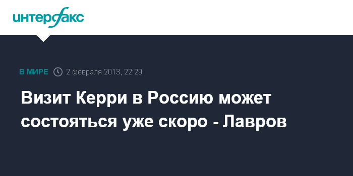 "(Вице-президент США) Байден подтвердил, что Керри получил мое приглашение и рассчитывает им воспользоваться в скором времени", - сказал С.Лавров журналистам в самолете по дороге из Мюнхена в Москву, комментируя итоги своей встречи с вице-президентом США Джозефом Байденом.