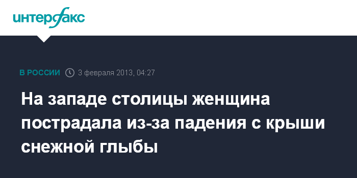 Москва. 3 февраля. ИНТЕРФАКС - Врачи борются за жизнь москвички, получившей тяжелую черепно-мозговую травму из-за падения льда на западе Москвы, сообщил в субботу "Интерфаксу" источник в медицинских кругах города.