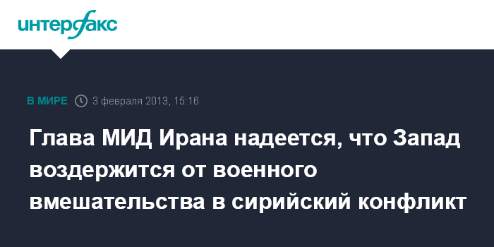 Глава МИД Ирана надеется, что Запад воздержится от военного вмешательства в сирийский конфликт
