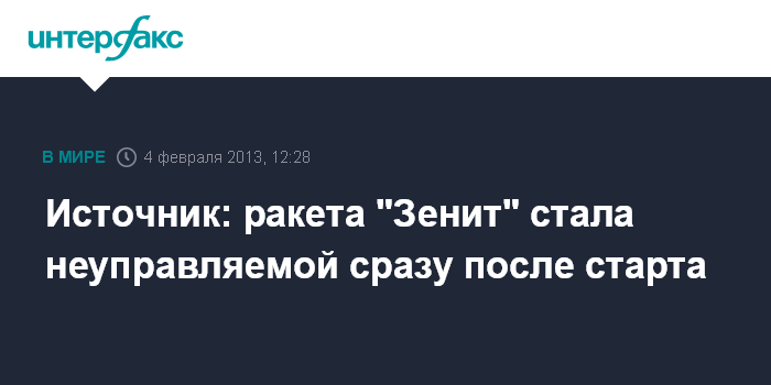 Источник: ракета "Зенит" стала неуправляемой сразу после старта
