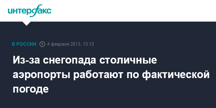 Москва. 4 февраля. INTERFAX.RU - Московские аэропорты из-за сильного снегопада работают по фактической погоде, командиры самолетов самостоятельно принимают решения о взлетах и посадках, сообщил "Интерфаксу" источник в авиадиспетчерских службах московского авиаузла.