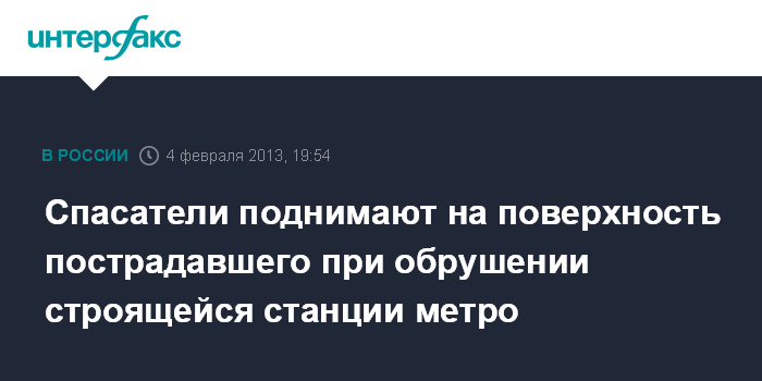 Спасатели поднимают на поверхность пострадавшего при обрушении строящейся станции метро