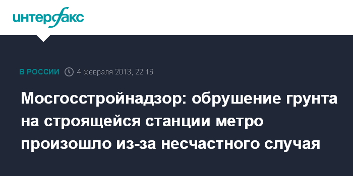Мосгосстройнадзор: обрушение грунта на строящейся станции метро произошло из-за несчастного случая