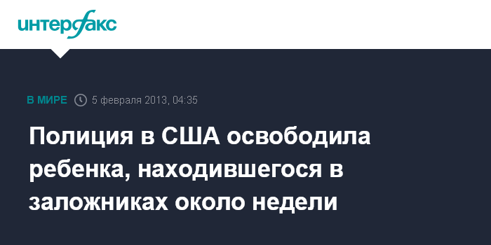 Полиция в США освободила ребенка, находившегося в заложниках около недели