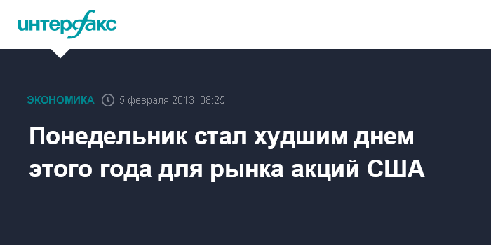 Нью-Йорк. 5 февраля. INTERFAX.RU - Американские фондовые индексы упали в понедельник из-за роста политической напряженности в Европе и опасений, что долговой кризис в регионе может обостриться. Кроме того, негативом для рынка выступили данные по экономике США, сообщило агентство Bloomberg.