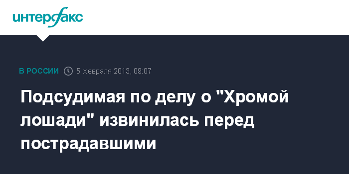 Подсудимая по делу о "Хромой лошади" извинилась перед пострадавшими