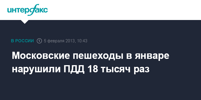 Как сообщил сотрудник пресс-службы, в 2012 году было зафиксировано 303210 случаев нарушений пешеходами правил перехода проезжей части. По его словам, основную часть нарушений, совершаемых столичными пешеходами, составляет переход в неустановленном месте и на запрещающий сигнал светофора.