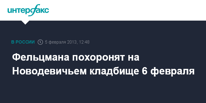 Вдова также сказала, что Фельцмана решили не отпевать, поскольку он не был крещен. "По крайней мере, нам никому доподлинно ничего об этом неизвестно, поэтому мы решили без отпевания", - отметила Каранова.