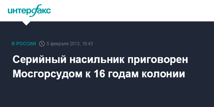 Серийный насильник приговорен Мосгорсудом к 16 годам колонии