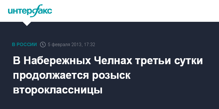 Казань. 5 февраля. INTERFAX.RU - Третьи сутки продолжается поиск 8-летней жительницы поселка Сидоровка (в черте Набережных Челнов, Татарстан) Василисы Галицыной, которая не вернулась домой из школы 2 февраля.