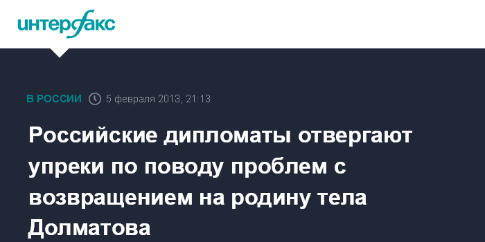 Российские дипломаты отвергают упреки по поводу проблем с возвращением на родину тела Долматова