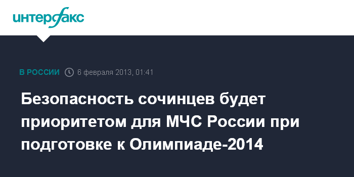 Сочи. 6 февраля. ИНТЕРФАКС - Безопасность и комфорт местных жителей будут приоритетом работы МЧС России при подготовке к зимней Олимпиаде-2014 в Сочи, заявил во вторник глава ведомства Владимир Пучков.