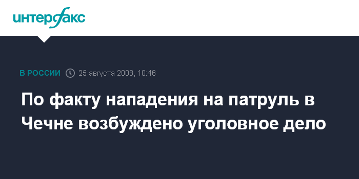 Грозный. 25 августа. INTERFAX.RU - Чеченские власти возбудили уголовное дело по факту обстрела в населенном пункте Гехи-Чу Урус-Мартановского района сотрудников милиции. В результате нападения один из милиционеров был убит, еще один получил ранения.