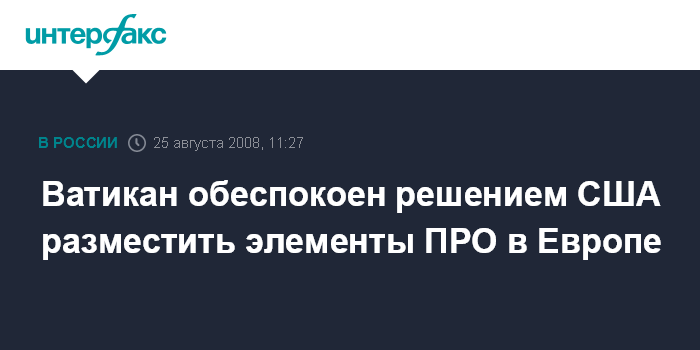 Ватикан. 25 августа. INTERFAX.RU - Решение США разместить в Польше и Чехии элементы своей ПРО может поставить под угрозу "международные отношения, а также процесс всеобщего разоружения", - считают в Ватикане.
