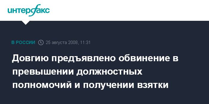 Довгию предъявлено обвинение в превышении должностных полномочий и получении взятки