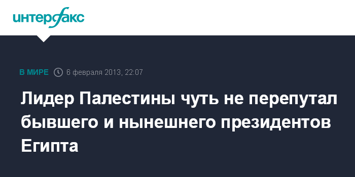 Каир. 6 февраля. INTERFAX.RU - Глава Палестинской автономии Махмуд Аббас на саммите Организации исламского сотрудничества в обращении к президенту Египта Мухаммеду Мурси чуть было не назвал его Хосни Мубараком, поправив себя в последний момент.