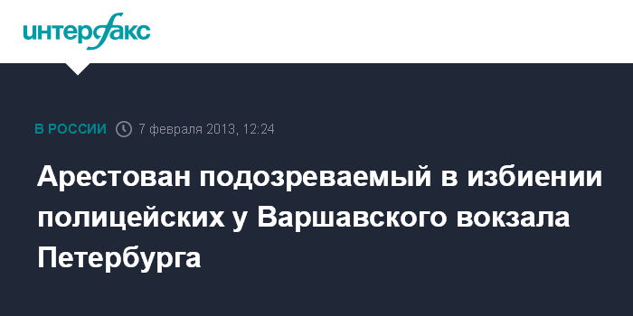 Арестован подозреваемый в избиении полицейских у Варшавского вокзала Петербурга