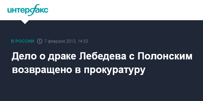 Дело о драке Лебедева с Полонским возвращено в прокуратуру