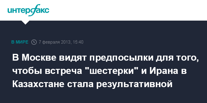 В Москве видят предпосылки для того, чтобы встреча "шестерки" и Ирана в Казахстане стала результативной