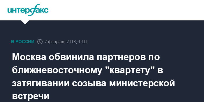 Москва. 7 февраля. INTERFAX.RU - В России считают, что ее партнеры по ближневосточному "квартету" затягивают созыв встречи на уровне министров.