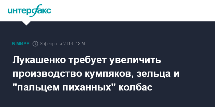 Лукашенко требует увеличить производство кумпяков, зельца и "пальцем пиханных" колбас