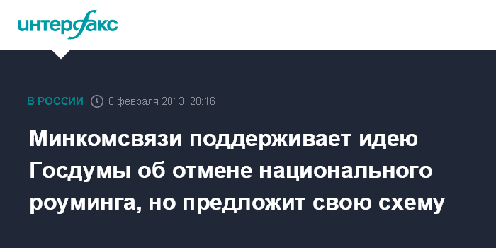 Москва. 8 февраля. INTERFAX.RU - Министерство связи и массовых коммуникаций РФ поддерживает законопроект Госдумы об отмене внутрисетевого роуминга, но предложит свой механизм реализации этой инициативы, заявил журналистам замглавы Минкомсвязи Денис Свердлов.