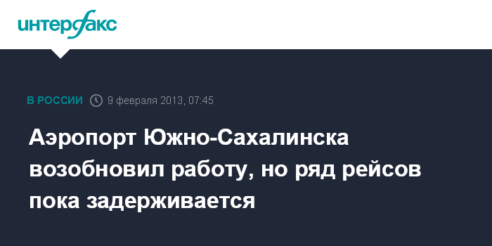 Южно-Сахалинск. 9 февраля. ИНТЕРФАКС-ДАЛЬНИЙ ВОСТОК - Аэропорт Южно-Сахалинска с улучшением погодных условий возобновил утром в субботу прием и выпуск рейсов, сообщает пресс-служба аэропорта.
