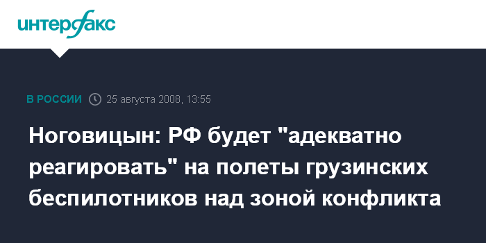 Ноговицын: РФ будет "адекватно реагировать" на полеты грузинских беспилотников над зоной конфликта