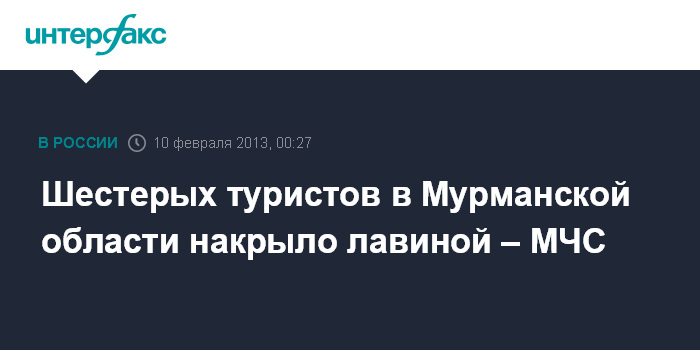 Москва. 10 февраля. ИНТЕРФАКС - В Мурманской области на горе Айкуайвенчорр под лавину попали шесть туристов, сообщили «Интерфаксу» в воскресенье в национальном центре управления кризисными ситуациями МЧС РФ.