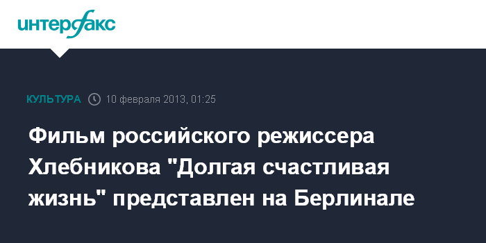 Берлин. 10 февраля. ИНТЕРФАКС - На 63-ем Берлинском кинофестивале прошла мировая премьера фильма Бориса Хлебникова "Долгая счастливая жизнь".