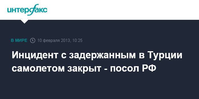 Инцидент с задержанным в Турции самолетом закрыт - посол РФ