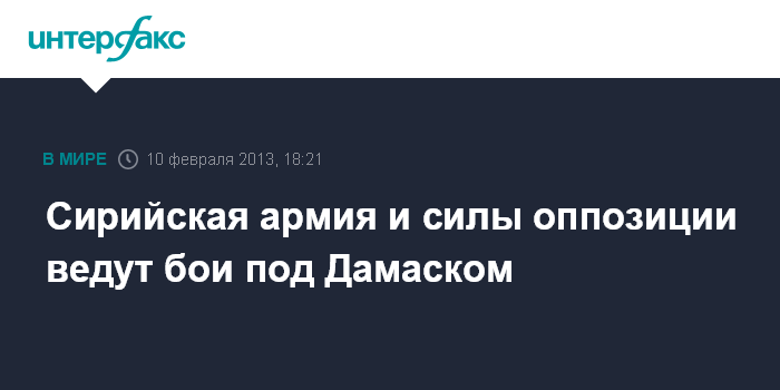 Бейрут. 10 февраля. INTERFAX.RU - Правительственные войска Сирии и силы оппозиции ведут бои в районе основной автомагистрали страны близ Дамаска, сообщает в воскресенье агентство АП. Один из оппозиционеров сообщил агентству, что им удалось вновь взять под контроль КПП на шоссе в районе Джубар в окрестностях столицы.