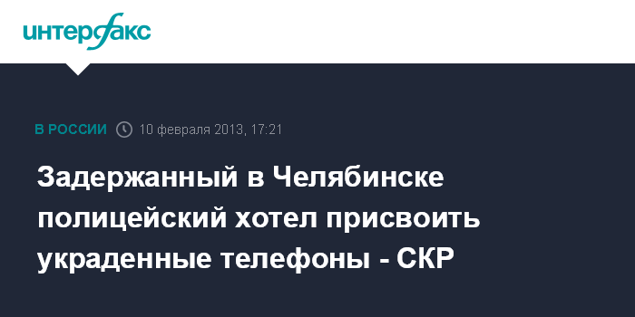 Москва. 10 февраля. INTERFAX.RU - Полицейский, подозреваемый в похищении сотрудника сотового оператора в Челябинске, по данным следствия, собирался присвоить половину партии сотовых телефонов, ранее похищенных у компании, сообщили в Следственном комитете России.